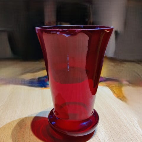 Vintage vihreä lasinen maljakko, jossa on valkoinen reuna ja aaltoileva muoto. Sisusta on valkoinen. Korkeus n. 21 cm ja leveys leveimmillään n. 16 cm.