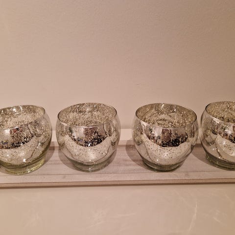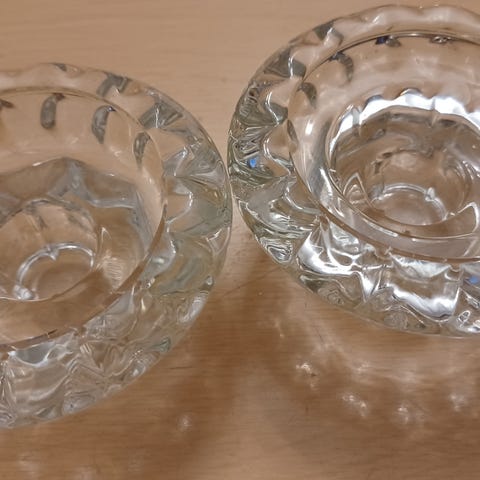 Lasikannu, tarjoiluastia, kynttiläteline, tuikkukippo, painava betoninen(?) O kirjain.