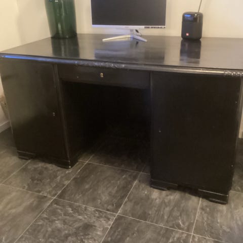 Vanha kaunis kirjoituspöytä (koivu). Koristeelliset yksityiskohdat ovissa. Päällyslevyssä pari pienehköä naarmua mutta yleisilme erittäin siisti ja kaunis.