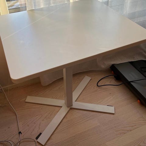 Korkeussäädettävä tietokonepöytä juomatelineellä.