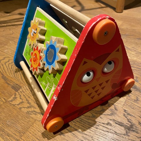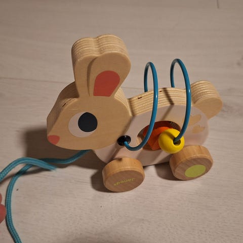 Myydään Jabadabadon suloinen puinen pupulelu pyörillä ja liikuteltavilla puuhelmillä. Kunto kuin uusi.