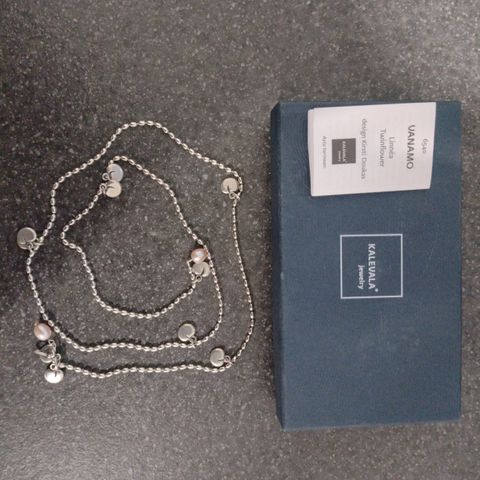 Kalevalan vanamo kaulakoru, pituus 80cm ja valkoiset helmet. Vanamo rannekoru valkoisilla helmillä, pituus 18cm Hyväkuntoiset, muutaman kerran käytetty.