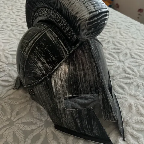 Myydään lasten harmaa muovinen ritarin kypärä, silmikko liikkuu. Hauska lisä ritarileikkeihin!