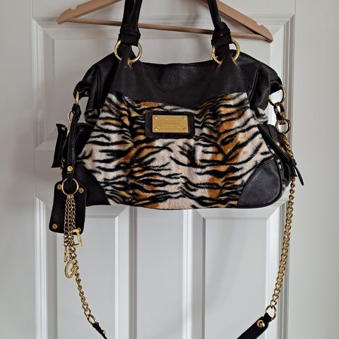 Kuvanmukainen käyttämätön käsilaukku. Sisäkuvissa salama hieman vääristää sisuksen väriä.