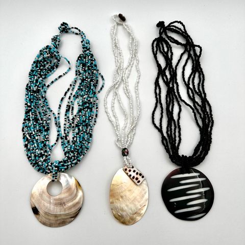 Kaulakoru, keraamiset helmet,lasi ja puu