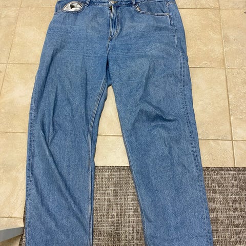 Naisten farkut, koko 50, vyötärönympärysmitta 85cm. Edessä ja takana taskut.