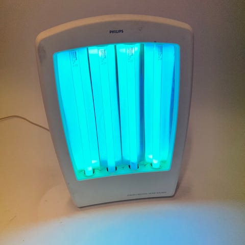 Lamput: Varustettu 10 x Philips TLK 40W/10R UVA-lampuilla. Nämä lamput tuottavat juuri oikean aallonpituuden valotusmateriaaleille.