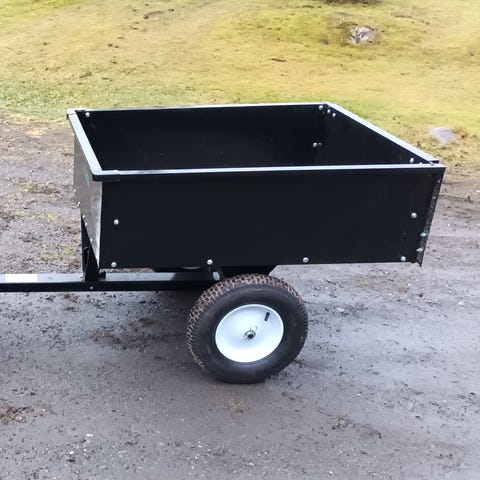 Siisti ajettavan ruohonleikkurin peräkärry. Peräkärryn mitat ovat 112 x 75 x 20 cm. Maksimikuorma on 294 kg.