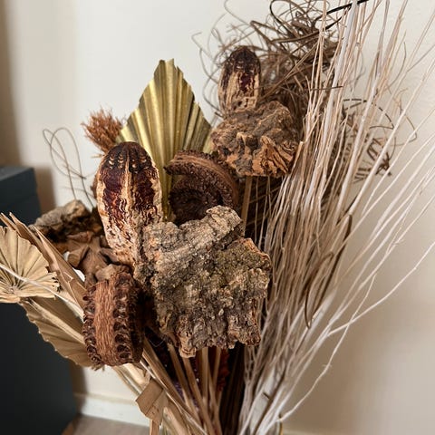 Palmikoiden muotoon käsityönä valmistetut erikoiset, kauniit kuivakukkakoristeet sinulle, joka haluat koristeeksi kotiisi jotain tavanomaisuudesta erottuvaa. Palmikoiden päissä paperirusetit. Myynnissä palmikkopari. Myydään yhdessä taikka erikseen. Myynnissä Lohjalla, mutta kulkeutuvat tarvittaessa ilman postikuluja tyttäreni mukana ainakin Helsingin seudulle ja Ikealle/Espooseen. Hp. 5 euroa/kpl