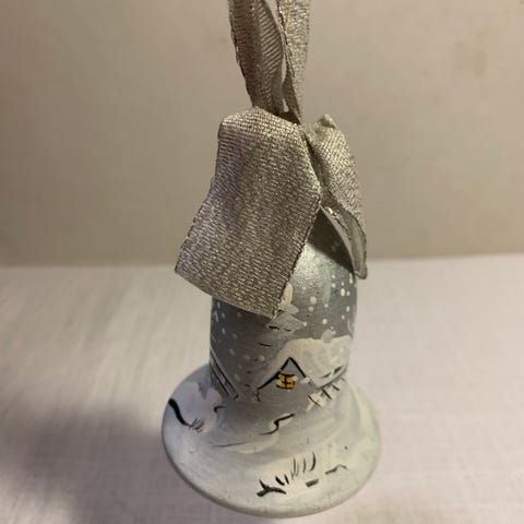 Uudenveroinen, ihastuttava käsin maalattu jouluinen pikkukello rasiassaan. Tonttu ja lyhty molemmin puolin. Erittäin hieno. Posliinia. Kultaukset. Rasiassa vähän kulumaa.