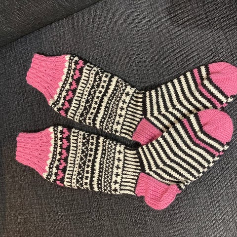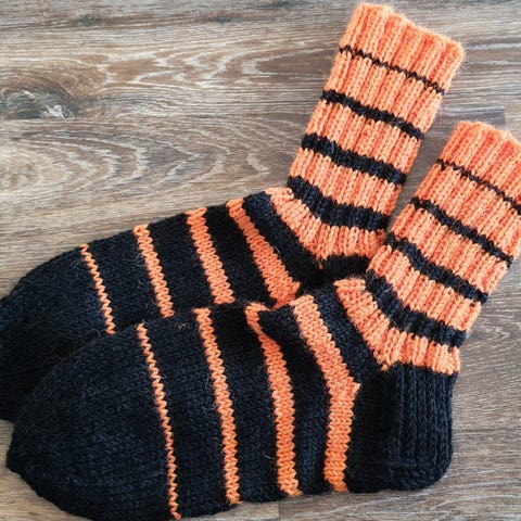 Seitsemän veljestä langasta neulotut sukat. Ei toridiiliä, nouto tai lähetys 6,90€.