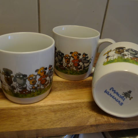 Kolmiulotteiset Koiramäki-sarjan mukit 4 kpl. Uutta vastaavassa kunnossa. Myynnissä Lohjalla, mutta kulkeutuvat ilman postimaksua omien menojen mukaan Kamppiin, Espoon Ikealle tai Espoon keskukseen. Hp. 3 euroa/kpl.