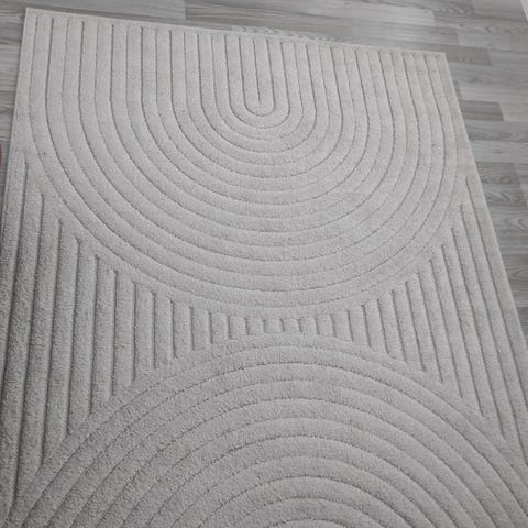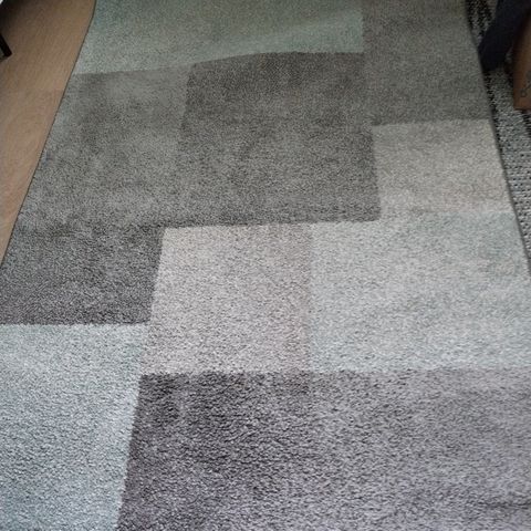 Hyvin pidetty, uudenveroinen, korkeanukkainen matto. Halkaisija 120 cm, väri kiiltävän harmaa.