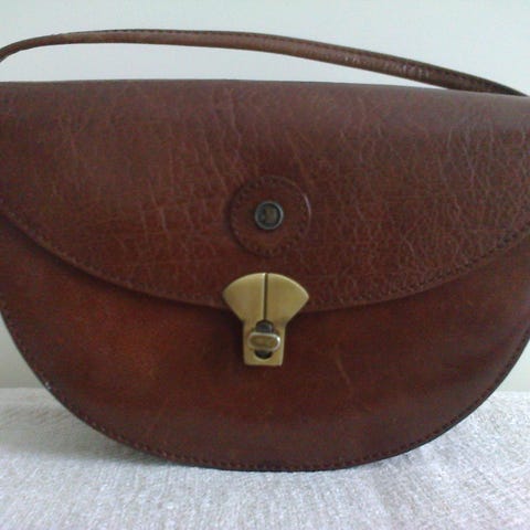 Uudehko crossbody olkalaukku, puhelimen kokoinen suunnilleen.