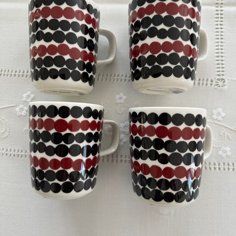 Marimekko Siirtolapuutarha mukit. Olleet vähällä käytöllä 2,5dl. Yhteensä 26€ tai yksittäin 14€. Nouto tai postitus (kulut ostajalle). Pakkaan hyvin.