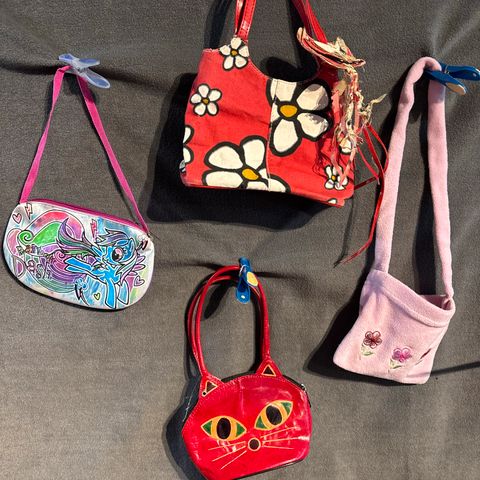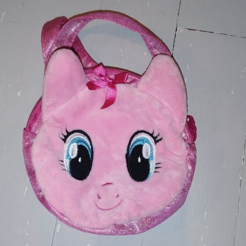 Kuvanmukainen lasten käsilaukku. Käytetty mutta vielä hyväkuntoinen. Leveys 14 cm, korkeus 12 cm.