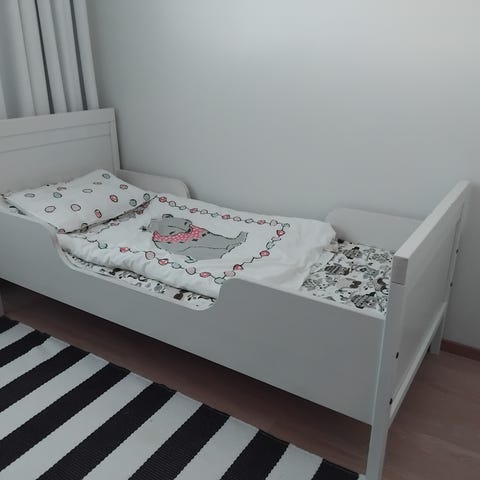 Kaunis ja hyväkuntoinen lastensänky + patja sekä ulosvedettävä säilytyslaatikko alla. Sängyn koko on 70x140 cm. Patjassa on aina käytetty suojusta, joten säilynyt hyvänä. Ulosvedettävän laatikon pohjassa yhdessä reunassa halkeama mutta ei ole kuitenkaan läpi mennyt ja ei vaikuta käyttöön. Turvalaidan voi vaihtaa toiselle puolelle tarvittaessa. Noutaa voi Turusta Hirvensalosta. Omien menojen mukana voi kulkeutua myös muualle Turkuun.