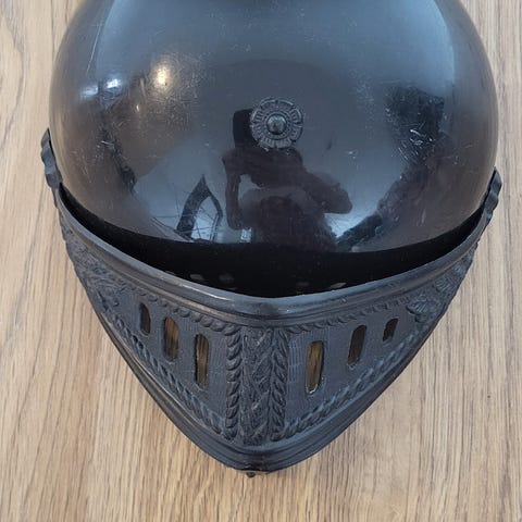Myydään kuvan lasten ritarin kypärä.