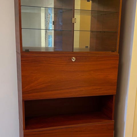 Kaunis ilmeisesti akaasiapuinen vitriini/kaappi ostettu sisustusliikkeestä noin 20v sitten.