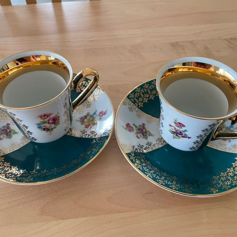 Myynnissä käytetyt, mutta hyväkuntoiset vanhat tsekkoslovakialaiset kahvikupit, joissa sydän. Epiag metkkiset. Kaikki yhteensä 8 eurolla.