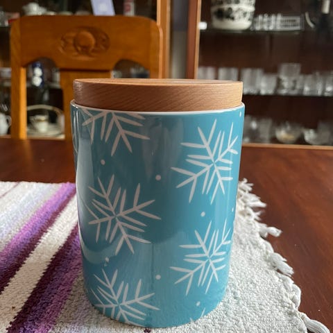 Käyttämätön Arabian purkki tiiviillä kannella. Korkeus 13,5 cm kannen kanssa, halkaisija 10 cm. Täytä vaikka karkeilla ja anna lahjaksi.