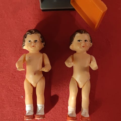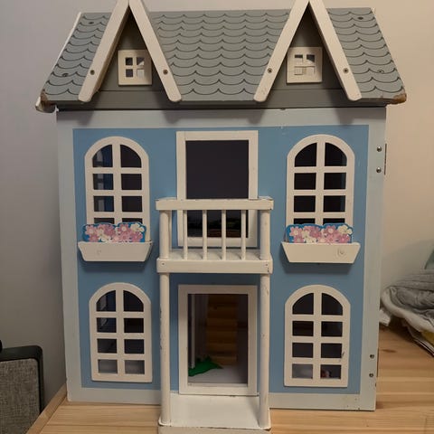 Myydään kuvien mukaisessa kunnossa oleva Geobra vaaka lelu vintage lasten nukkekoti sininen valkoinen oranssi