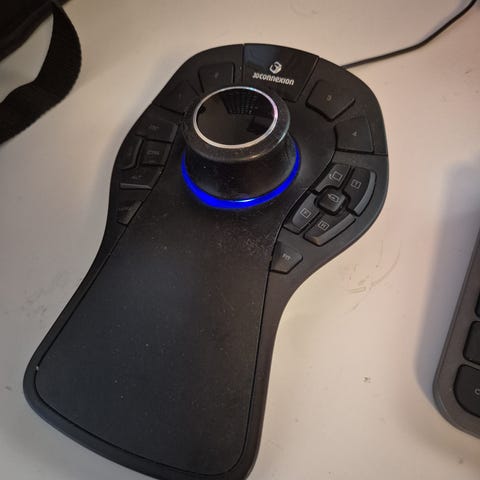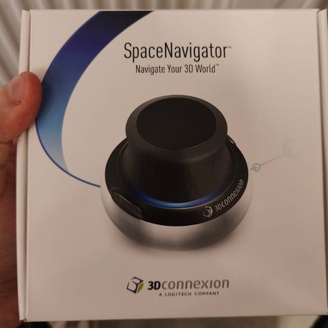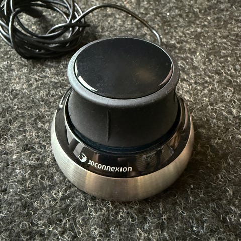 Noin kymmenisen vuotta vanha Spacemouse (spacenavigator siihen aikaan), reilusti käytön jälkiä, langallinen versio.