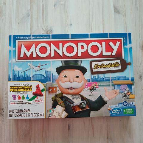 Monopoly Världsturné lautapeli sisältää pelilaudan, rahaa, pelinappuloita ja kortteja. Peli on suunniteltu useammalle pelaajalle ja sisältää maailmanlaajuisen teeman.