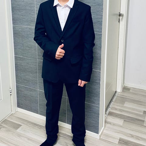 HM musta puku, bleiseri ja housut 164 cm. Siisti, kerran käytetty