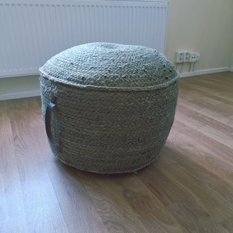 Samettinen rahi jonka sisällä säilytystilaa. Väri sininen. Nouto Vuokatista.