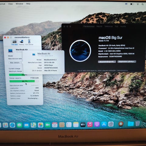 Myydään hyväkuntoinen MacBook Air, vuosimalli 2013. Väri hopea. Vain nouto.