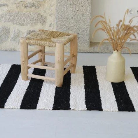 Avainsanat: kylpyhuoneen matto, raidallinen matto, marokkolainen matto, kylpyhuone, puuvilla, kierrätysmateriaalit, matto, sisustusinspiraatio, luonnonmateriaalit