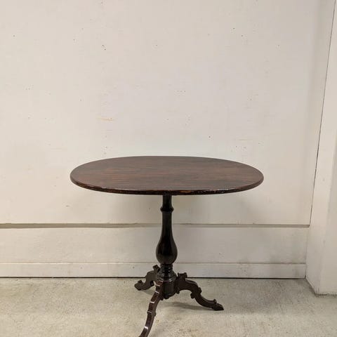 Pöytälevyn halkaisija on 62 cm. Korkeus 58 cm. Hyvä alkuperäiskunto. Siro koivupöytä, pöytälevy on tehty neljästä palasta. Ajan patinaa toki pöytä levyssä. Nouto Tesomalta sovitusti.