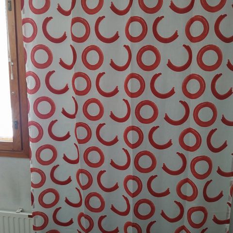 Kaunis valoa läpäisevä kangas. Ripustus verhonauhalla. Alakulmiin ommeltu verhopainot.