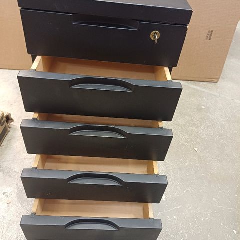 Artekin koivuinen laatikosto. Laatikosto on ihan hyvässä käytetyssä kunnossa ja siinä on vielä avain tallella. Toisessa laatikostossa on viisi samankorkuista laatikkoa.