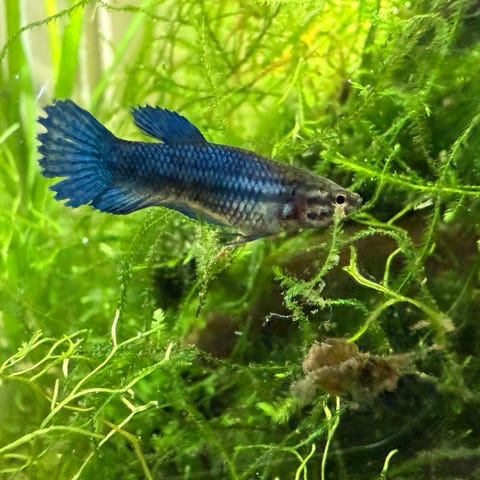 Taistelukalan poikasia joilla värit ovat alkaneet näkyä.