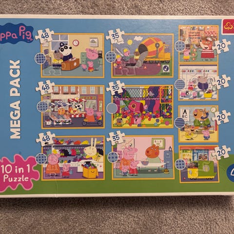 Muumi-muistipeli, Pipsa Possu -palapeli, erilaisia numeropalapelejä, nuppipalapelejä, Ryhmä Hau-palapelikirja jne!