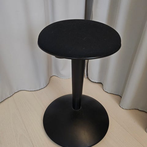 Seisomatuoli, istuimen korkeus säädettävä. Istuin osa 30sm leveä ja 26 sm pitkä, kokoontaitteva.