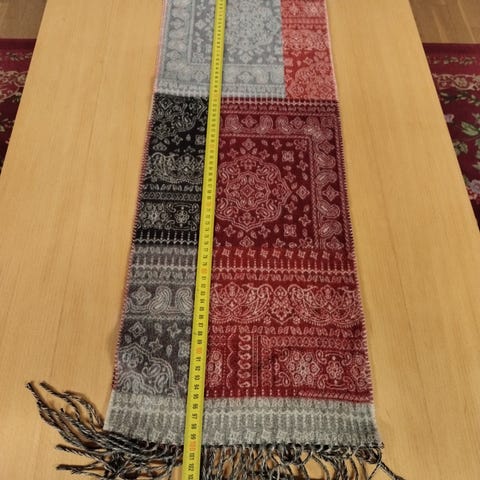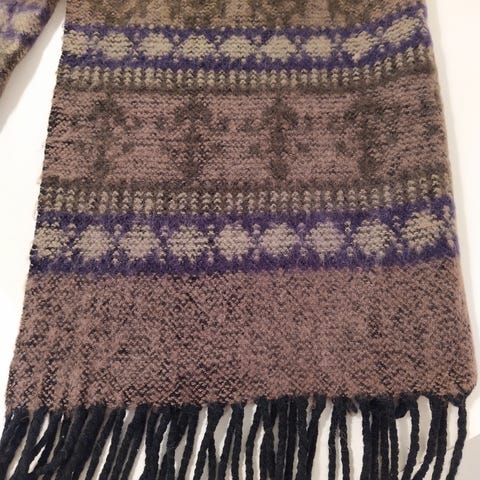 Onlyn kirjava kaulahuivi ruskein ja vaaleanpunaisin sävyin. Hapsut päissä.