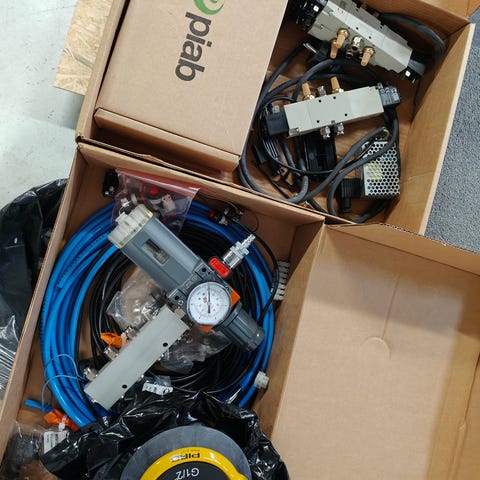 16 osainen sähkötoiminen sarjaventtiili 24v AC/DC toimii myös 12v. Sekä paineilmasylinteri, iskunpituus 400mm ja ilmalinjaston öljystin.