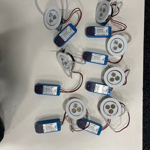 Myydään 3 kpl upotettavia LED-spotteja, sekä 1 kpl Osram Halotronic HTM 105/230 - Himmennettävä elektroninen liitäntälaite (12V).