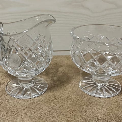 Kannessa pieni aukko lusikalla. Ei lusikkaa. Kristallia. Korkeus 7 cm, suunhalkaisija 3 cm. Ehjä ja siisti. Katso muut ilmoitukseni. Nouto /käteinen.