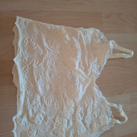 Myydään tyttöjen pitsitoppi. Topissa on valkoinen vuori. Siisti, ei tahroja.