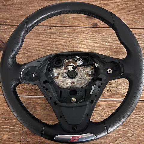 Hyväkuntoinen nahkaratti Focukseen! Käy asentaa myös ilman monitoiminappeja autoon, jossa niitä ei ole!
