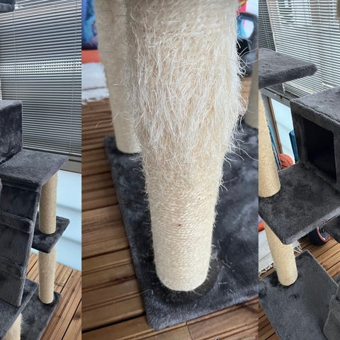 Myydään kuvien uniikki raapimispuu missä rauhoittumis mökki yläkerrassa. Nouto.