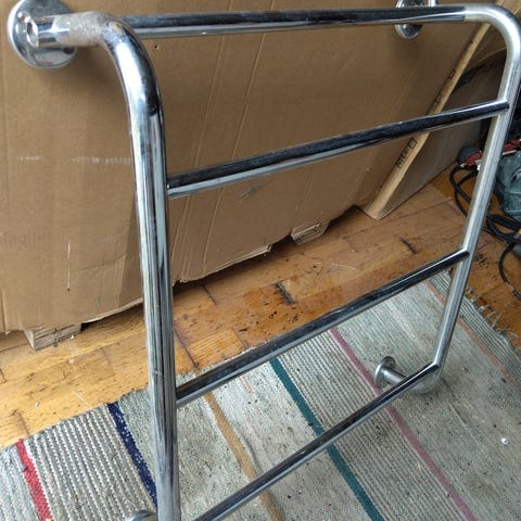Käyttövesikiertoinen pyyhekuivain (rättipatteri). 65x75cm. Kylpyhuoneremontin tieltä pois. Käytetty alle vuosi. Toimitetaan myös Helsingin keskustaan.