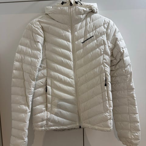 Pirtsakan pinkin värinen untuvatakki koossa S. Takki edelleen hyvässä kunnossa, mutta bongasin pienen melko huomaamattoman tahran, joka kuvassa ja tämä on huomioitu hinnassa.