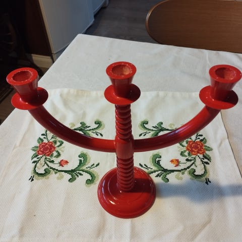Vanha messinkinen kynttelikkö viidelle kynttilälle. Nouto Turun keskustasta tai Toridiili.