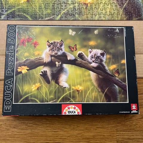 Palapeli jossa keskellä tavallinen palapeli ja ympärillä tästä palapelistä tuttuja hyönteisiä, lintuja, kaloja yms. 48 palaa.