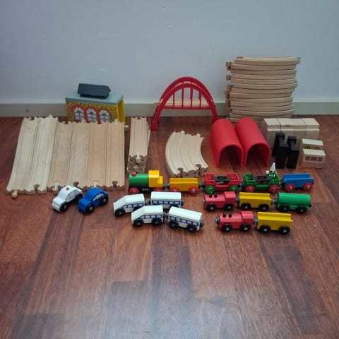 Puinen junarata leikkisetti